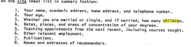 By the early 1970s, the job market had collapsed. The MLA had also changed the format of the Job Information List. Rather than only institutions that had openings listing them, all member institutions were queried. The chairs often took this opportunity to complain testily about the imposition and about the related phenomenon of being besieged from letters from job-seekers even though they had not advertised any positions.